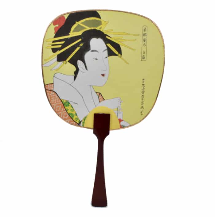 ‘Geisha with Fan’ paper fan with bamboo handle – 19cm