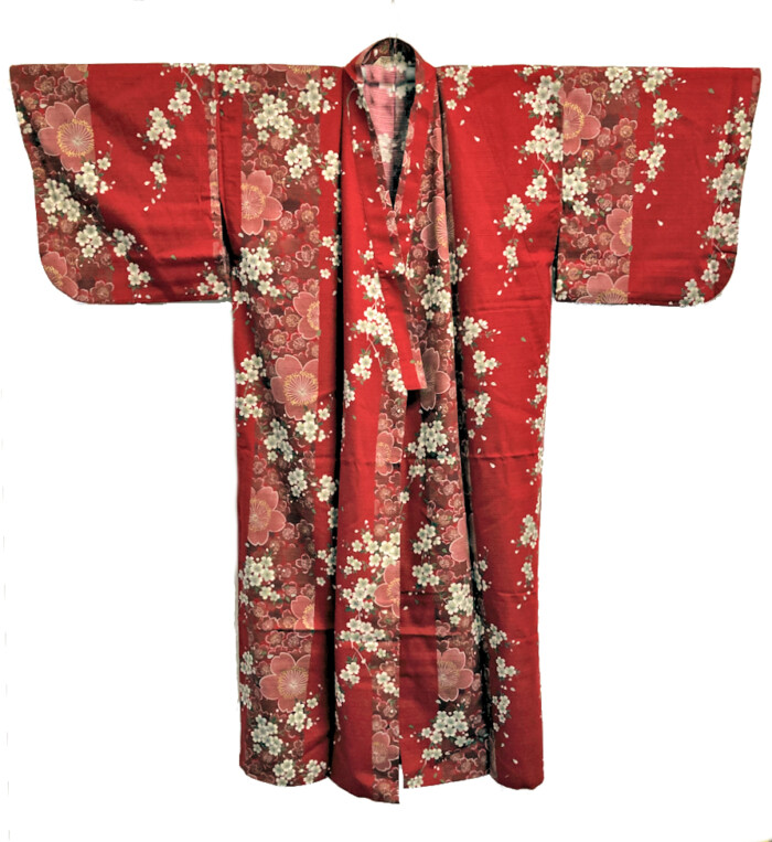 Japanese Cotton Gown ‘Cherry Blossoms’ – 55″ Red